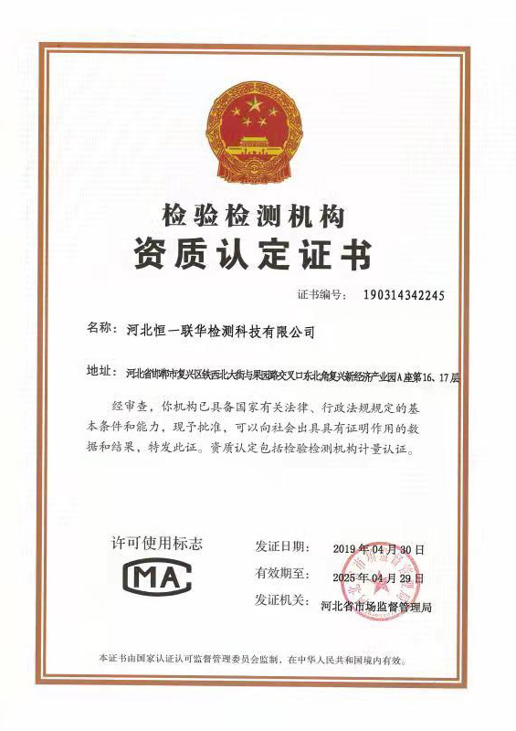 中國計量認(rèn)證簡稱“CMA”,是根據(jù)中華人民共和國計量法的規(guī)定,由省級以上人民政府計量行政部門對檢測機構(gòu)的檢測能力及可靠性進行的一種較全面的認(rèn)證及評價。這種認(rèn)證對象是所有對社會出具公正數(shù)據(jù)的產(chǎn)品質(zhì)量監(jiān)督檢驗機構(gòu)及其它各類實驗室;如各種產(chǎn)品質(zhì)量監(jiān)督檢驗站、環(huán)境檢測站、疾病預(yù)防控制中心等等。因此,取得計量認(rèn)證合格證書的檢測機構(gòu),允許其在檢驗報告上使用CMA標(biāo)記;有CMA標(biāo)記的檢驗報告可用于產(chǎn)品質(zhì)量評價、成果及司法鑒定,具有法律效力。